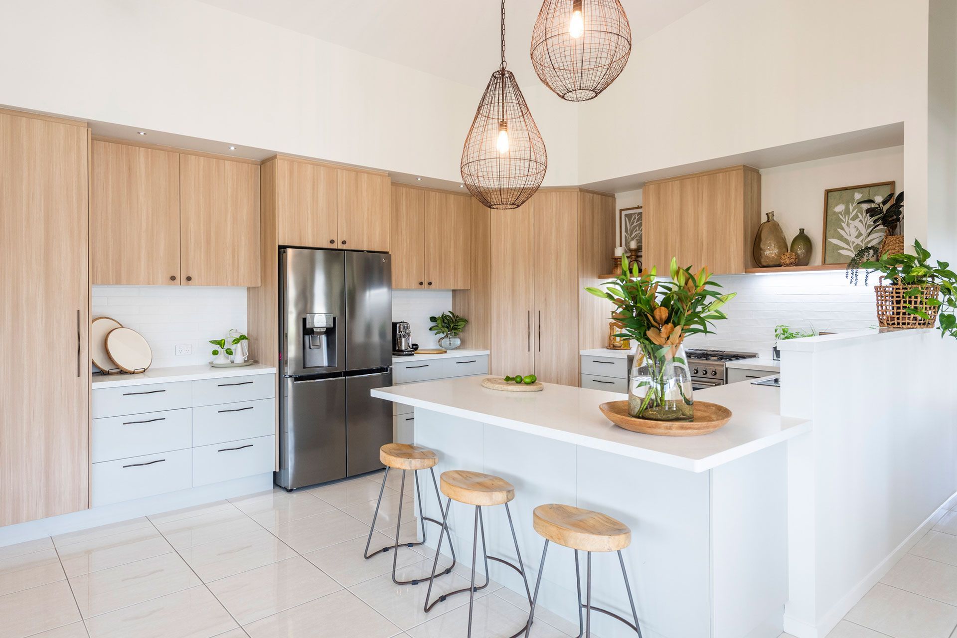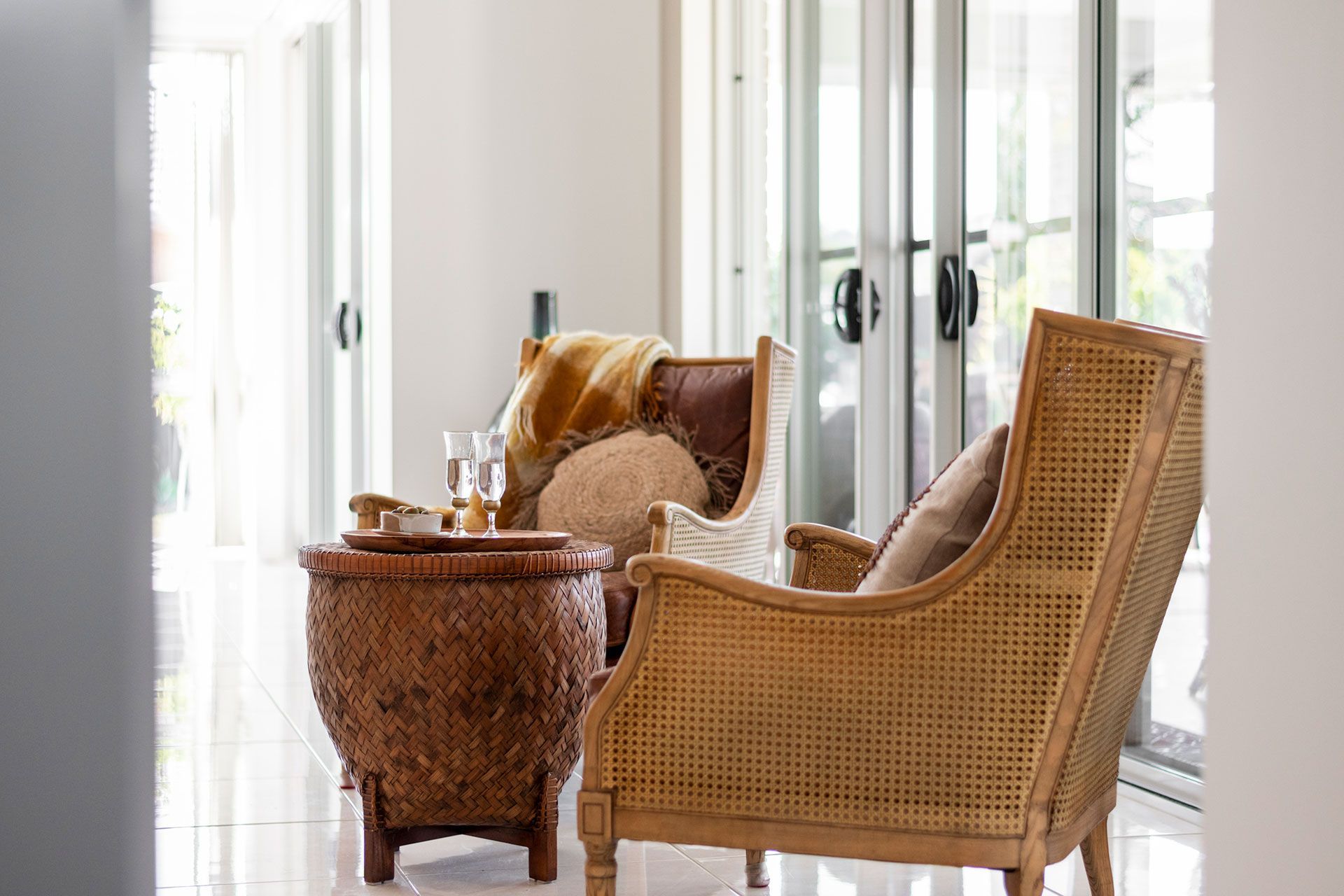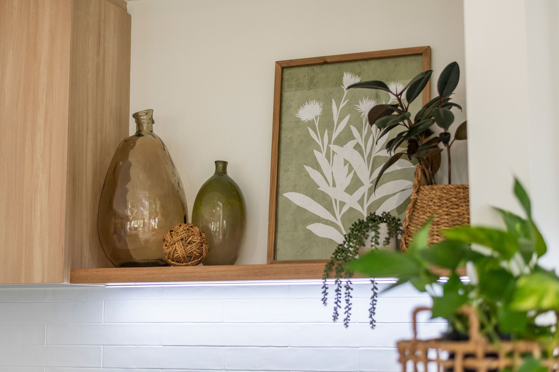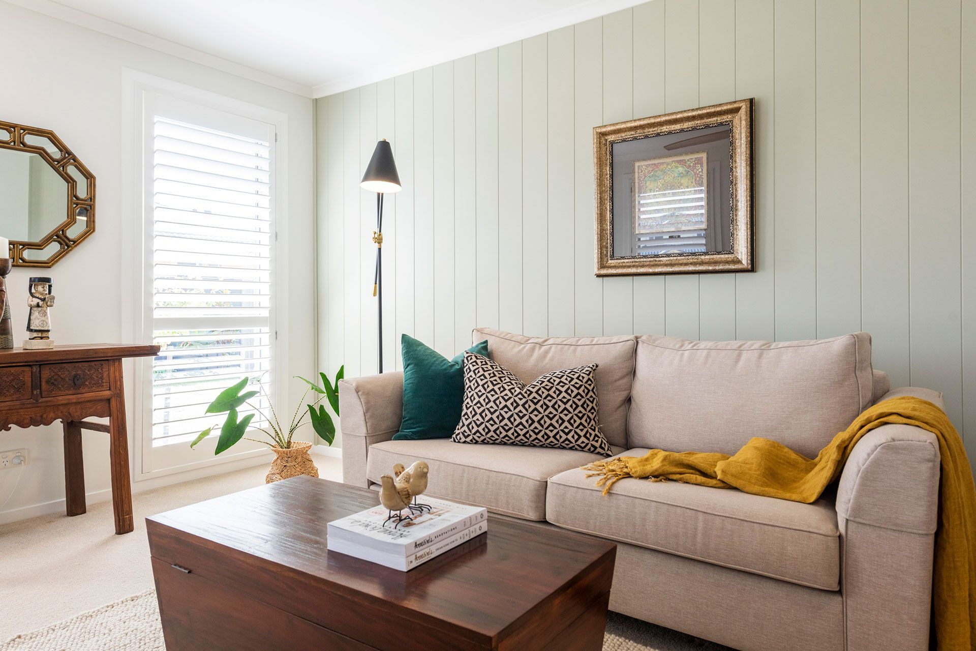 “Organic Lux” was the direction we were heading, with a new colour palette, new kitchen (the old was purple!), adding texture and interest in the form of wall panelling, new lighting, fans and final styling. Part of the brief involved merging my client’s pre-existing furniture including family heirlooms, into the new home in a sympathetic way.